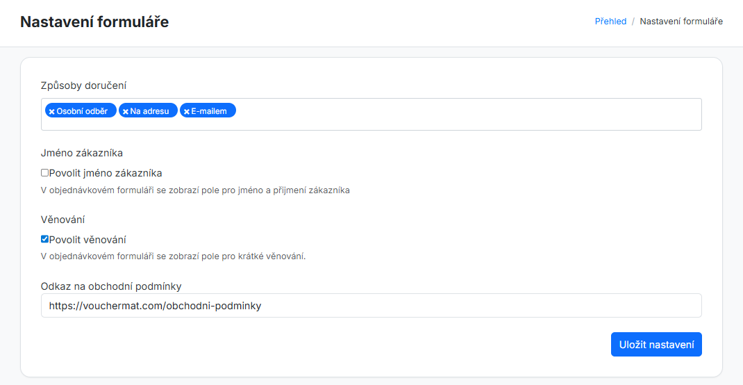 Nastavíte si zde objednávkový formulář, podle svých potřeb.